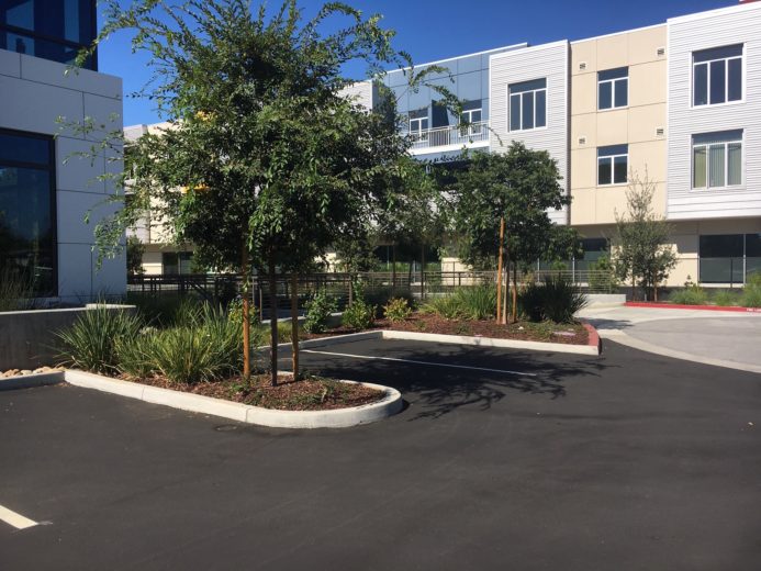 Silva细胞的生物滞留和透水路面一起处理了现场100%的降雨188金宝搏投注。该项目强调了对社区和环境的长期承诺。